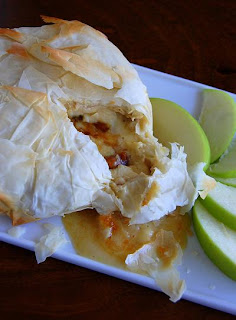 -Place the bottom layer of brie in the center of the phyllo dough.
